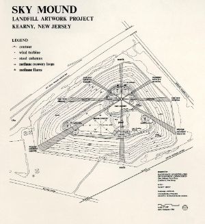 With the New Jersey Turnpike on one side of the landfill, the Amtrak and NJ Transit trains on the other and jets flying low over it on their way to Newark Airport, the 57-acre, 100-feet high landfill is one huge, highly visible, human-made mound. My proposal, Sky Mound, incorporates the entire landfill, top and side slopes, as well as a methane gas system, already in place, which was collaboratively designed to be part of the artwork, while recovering the methane gas generated by the decomposition of the organic garbage in the landfill. This gas is an alternative energy source for the community, supplying about ten percent of the gas used locally.