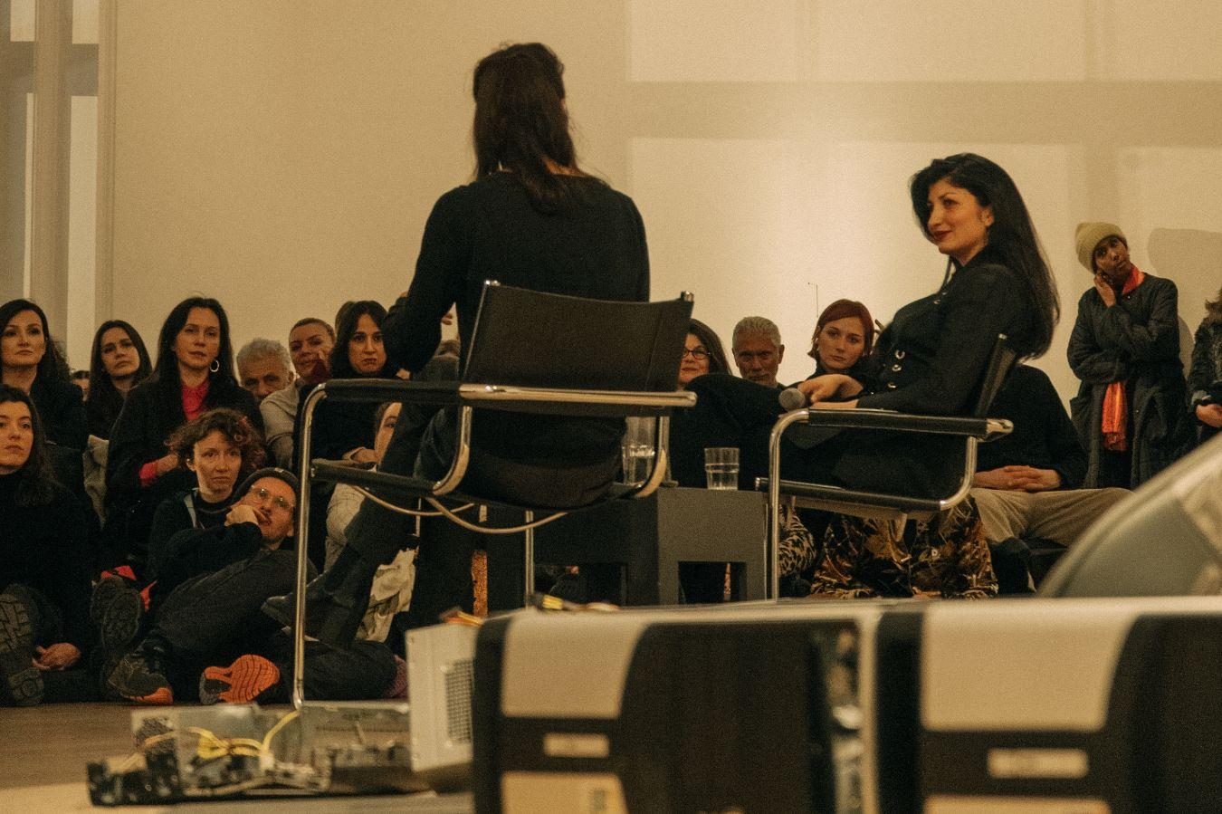 Selma Selman: I feel very humbled and emotional. This is the last day of this presentation and, for me, it was the biggest challenge ever. It was amazing to work with this kind of institution, but also very challenging. I came to Berlin on the 7th of October when the war started and I was, to be honest, emotionally destroyed. Still, I had to keep up with making the work and thinking about what’s next – what to expect from myself, what people are going to expect from me. I decided that I’m just going to do something that I believe is a good thing, that I believe is saying something about humanity, that I believe is about what we have in common, about something that can be communicated to many of us. That’s why, for me personally, this presentation was not meant to be only for the rich white supremacy; for people from the West. It’s meant for everyone to communicate with, to say things to. In my humble opinion, I do have a lot of things to say, and I do like to communicate with different kinds of people. So thank you, Zippora and your project team, for everything. It’s my honour to work with you. Thank you for your trust.
