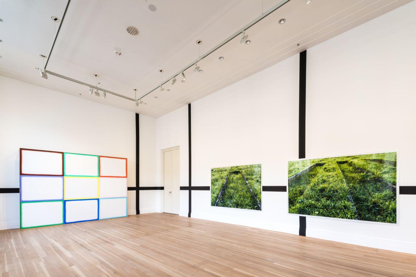 YOYI! Care, Repair, Heal, Andrea Büttner: Grid | Untitled (Painted Ceiling) | Former plant beds from the plantation and “herb gardens,” used by the Nazis for biodynamic agricultural research, at the Dachau Concentration Camp | Karmel Dachau, Installation view, Gropius Bau (2022)