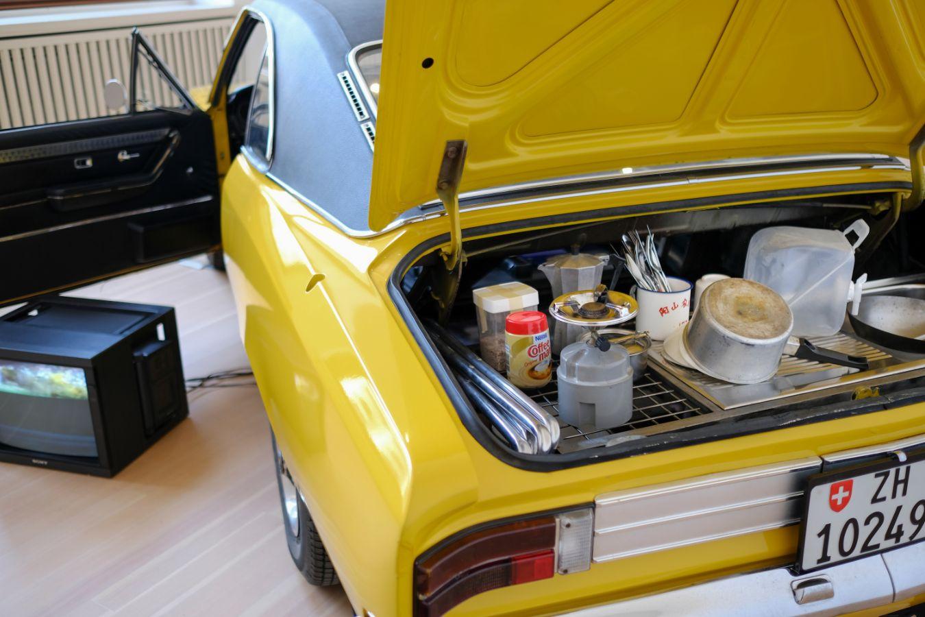 Rirkrit Tiravanija, untitled 1995 (bon voyage monsieur ackermann), 1995, detail, Rirkrit Tiravanija: DAS GLÜCK IST NICHT IMMER LUSTIG, Gropius Bau, 2024 © Gropius Bau, photo: Guannan Li
