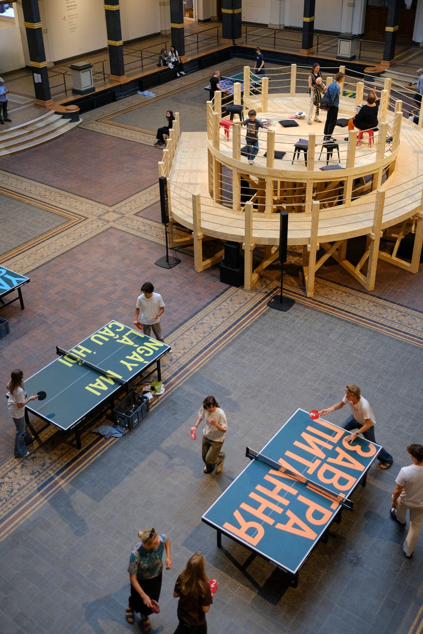Many of Tiravanija’s works foster communication, as when visitors share a table to eat and drink, play pingpong or make music together. The challenges and tensions that emerge are part of the work: who has the courage to express themselves in public? Which rules apply and who makes them?