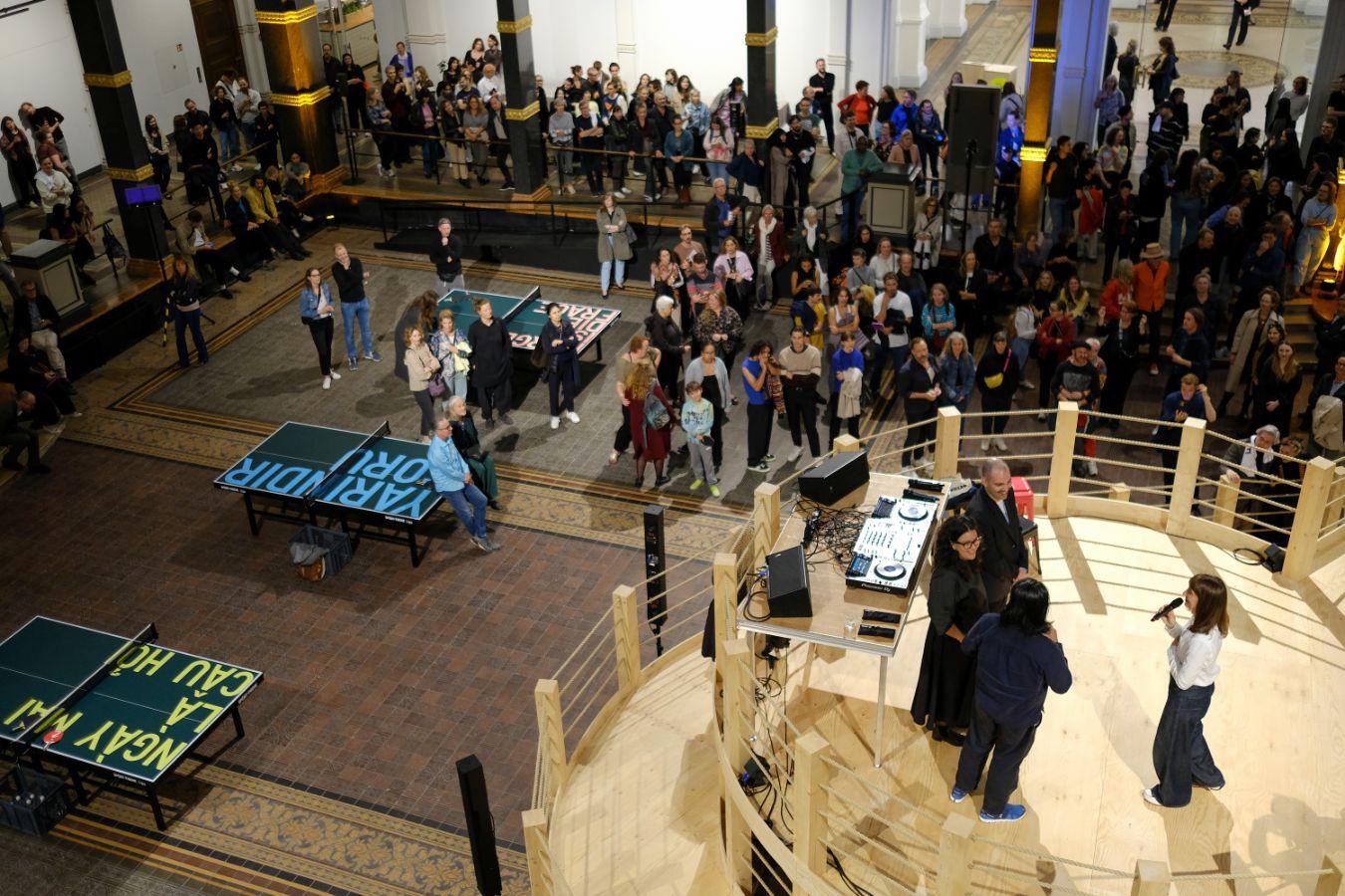 Rirkrit Tiravanija, untitled 2024 (demo station no. 8), untitled 2024 (tomorrow is the question), installation view, Rirkrit Tiravanija: DAS GLÜCK IST NICHT IMMER LUSTIG, Gropius Bau, 2024 © Gropius Bau, photo: Guannan Li
