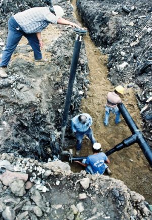 Ecological implications of a technological order are evident in Catch Basin, one of an ongoing series of works I began in 1981. Using basic technological systems, such as plumbing, electrical, drainage, heating, and ventilation systems, my System Works exposed sections of vast, ordinary hidden networks. Over the years these technological systems have become necessary for our everyday existence, yet they are usually hidden behind walls or beneath the earth and forgotten. We have trouble owning up to our almost total dependence on them. Yet with greater awareness of these systems, the channeling of the energy and elements of the earth can be done intelligently with the long-term benefit of the planet in mind. In doing so we become nature’s agents, rather than aggressors against nature.