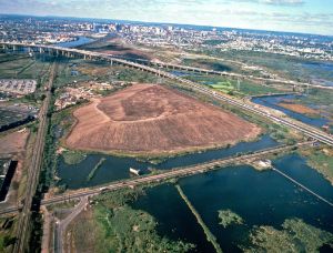 With the New Jersey Turnpike on one side of the landfill, the Amtrak and NJ Transit trains on the other and jets flying low over it on their way to Newark Airport, the 57-acre, 100-feet high landfill is one huge, highly visible, human-made mound. My proposal, Sky Mound, incorporates the entire landfill, top and side slopes, as well as a methane gas system, already in place, which was collaboratively designed to be part of the artwork, while recovering the methane gas generated by the decomposition of the organic garbage in the landfill. This gas is an alternative energy source for the community, supplying about ten percent of the gas used locally.