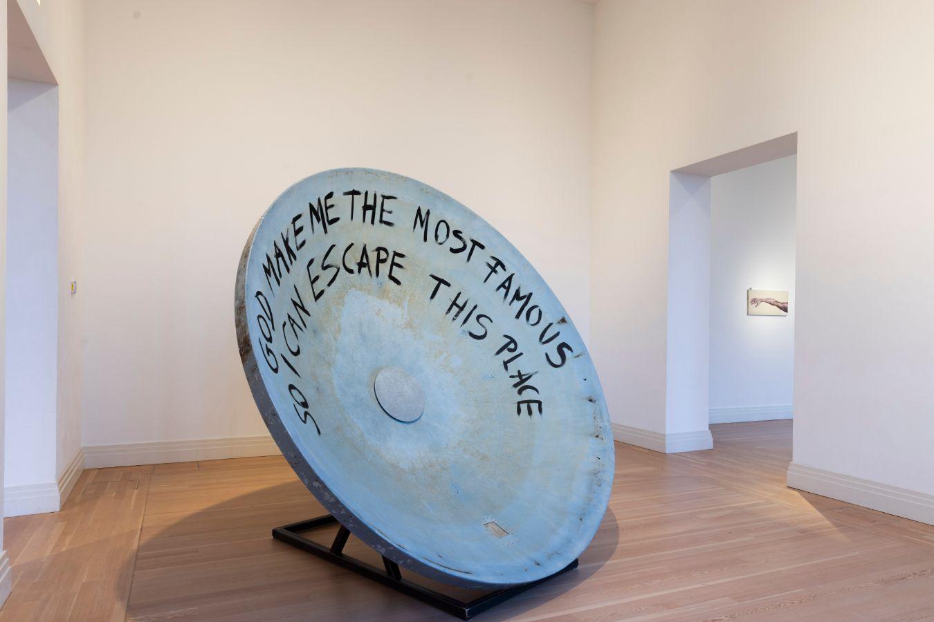 Selman: So, the sentence ‘GOD MAKE ME THE MOST FAMOUS SO I CAN ESCAPE THIS PLACE’ was actually the reality that I faced in Berlin. In contrast to my dreams in the past, I now wanted to be everywhere, but not here [in Berlin]. This work is very personal. It’s inspired by my life in my village. When you’re a child and you grow up under certain circumstances … I think that made me very strong. There was an attitude of, ‘Is there something you want? You only have yourself’. So, whatever you do, you’re trying to do something for a better tomorrow. Satellite Dish is not only about the satellite. It’s about communicating something that I desired for a long time, but I’m not sure if I want it now. It’s about that paradox. It’s kind of me making fun of myself, but at the same time, it speaks to the reality that not only I, but many of us – especially those who belong to marginalised communities – experience.