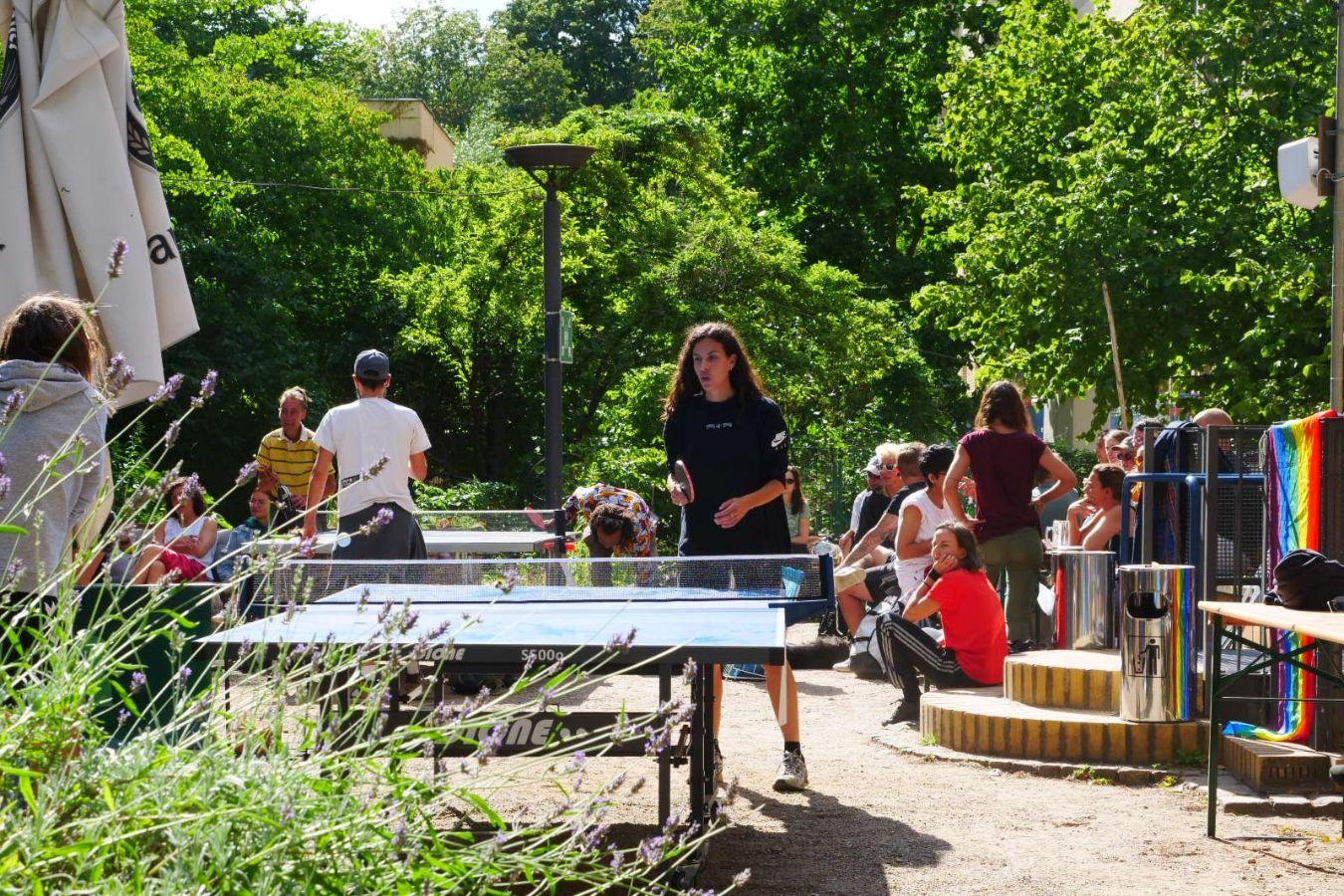 Queer Ping Pong passt sich dem jeweiligen Ort an und integriert Bewegung, Musik und postmigrantische Diskurse. Das normative Setting der Clubkultur wird dabei neu interpretiert: Die Veranstaltungen finden tagsüber und kostenlos statt. Alles läuft ganz entspannt, es zählt einzig und allein der Spaß am Spiel und an der Gemeinschaft – vom frühen Nachmittag bis zum Sonnenuntergang – inklusive obligatorischen Rundlaufs an der Ping-Pong-Platte.